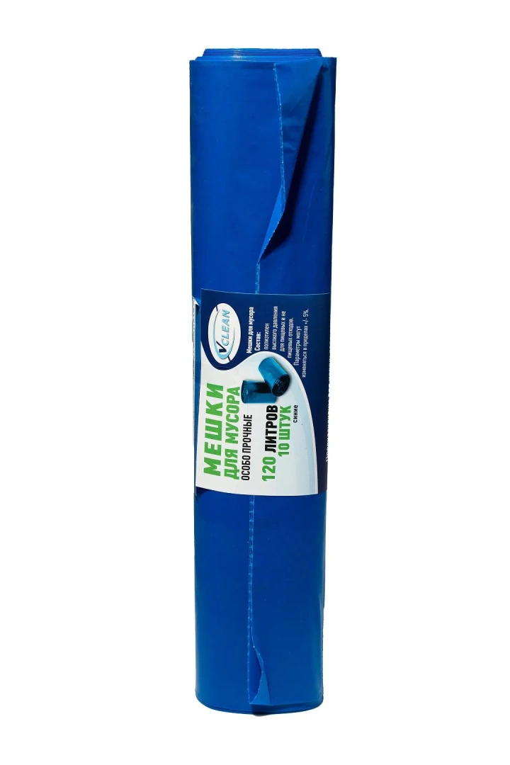 Мешки для мусора: 120л 70х110 ПВД VCLEAN 50 особо прочные синие /рул.=10 шт.