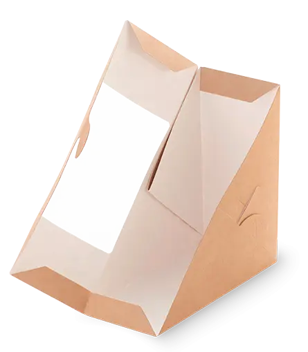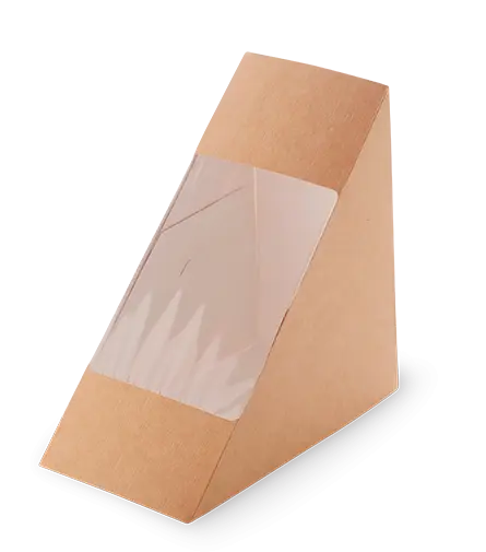 Одноразовая продукция: Контейнер бумажный для сэндвичей 126х126х71 крафт с окном OSQ SANDWICH 70 /пач.=50 шт.