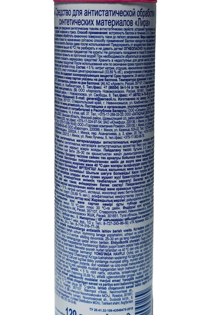 Антистатики(кондиционеры): ЛИРА 200см3 аэрозоль