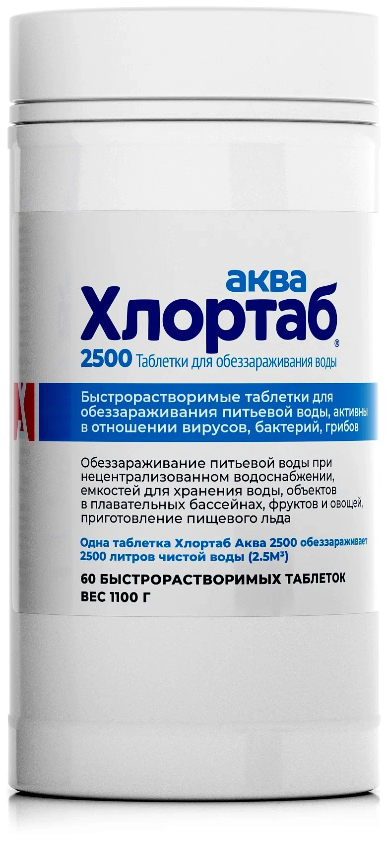 Дезсредства: ХлортабАква 1,1кг 60 таб для обеззараживания воды